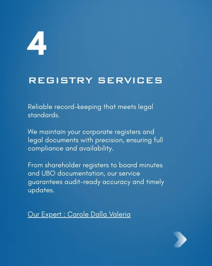 4๏ธโƒฃ Registry Services โ€“ For accurate and compliant record-keeping